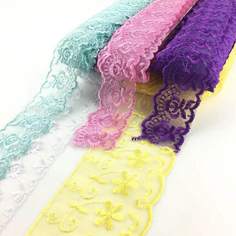Siste design Multi Colors Organza Lace Trim Embroidery Organza Lace Wholesale