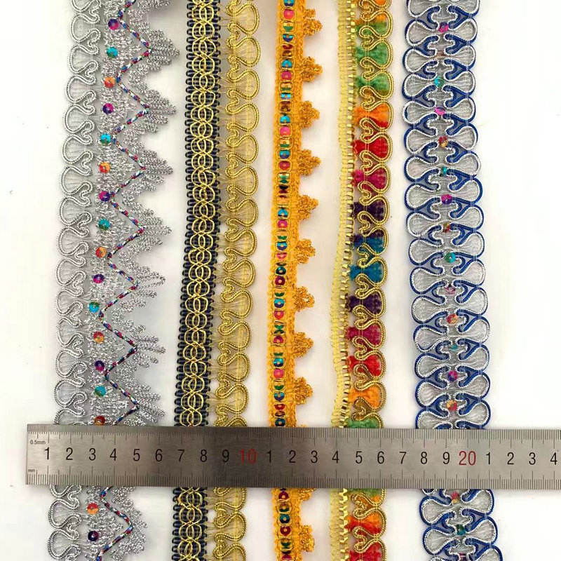 Klærtilbehør Gull og sølvmetallisk grense blonder trim multikolor paljett gulltråd metallisk blonder trim