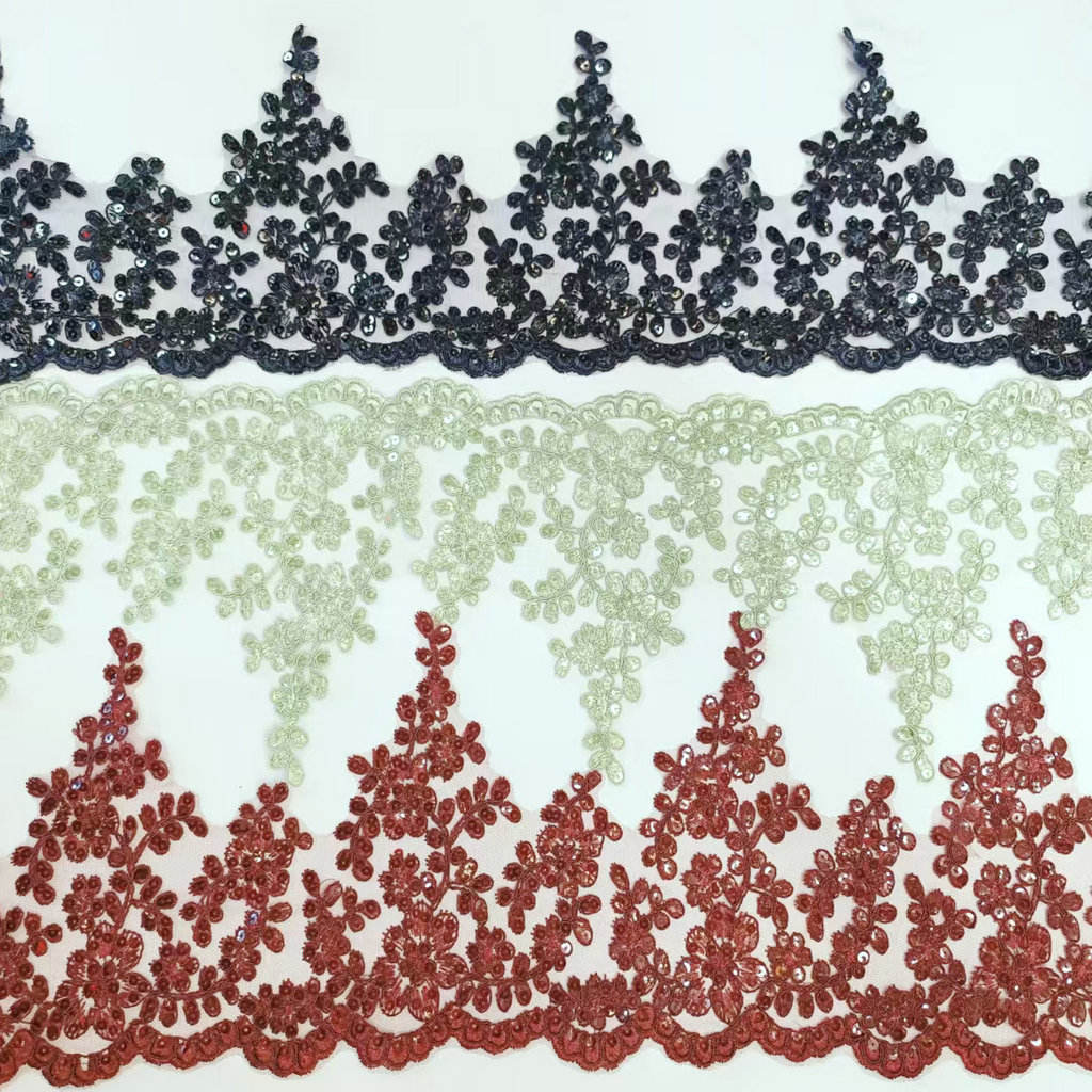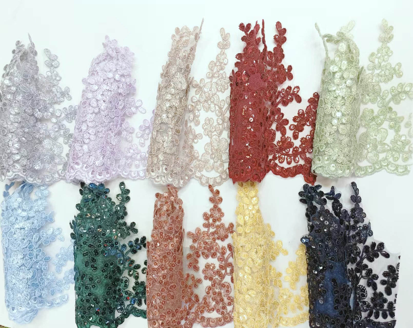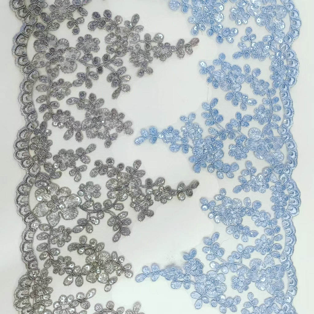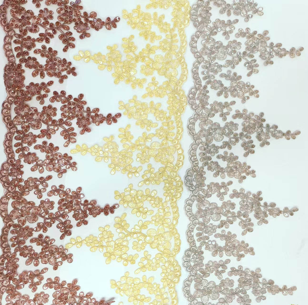 Luksus Bridal Fransk blonder paljetter brudekjole Border blonder for bryllup blonder med en high-end fransk blonderbase, håndsydde skinnende paljetter, mønstrene er utsøkte og tredimensjonale, med en lett og jevn tekstur. High-end dekorasjoner spesielt designet for brudekjoler og kveldskjoler, tilgjengelig i elfenbenhvite, champagnegull og andre toner, støtter tilpasset bredde og mønstre, og fremhever en luksuriøs og romantisk stil