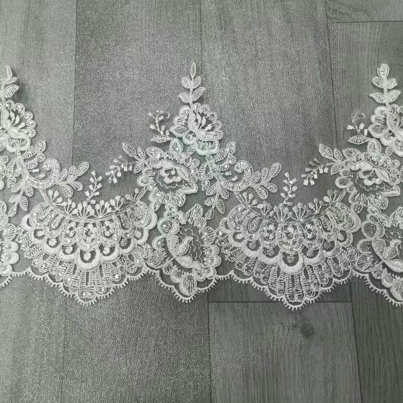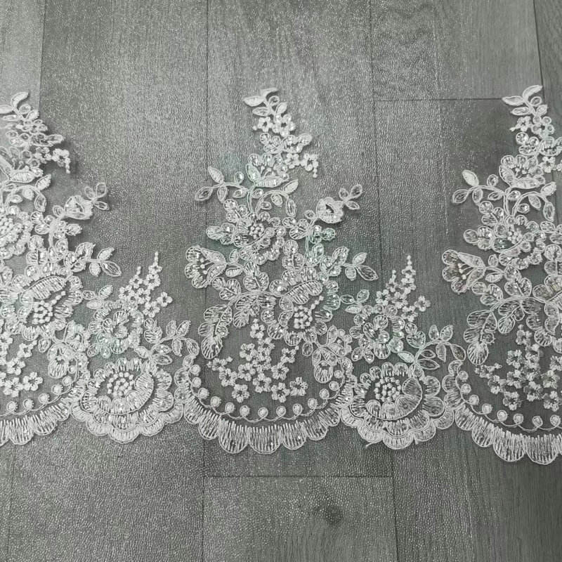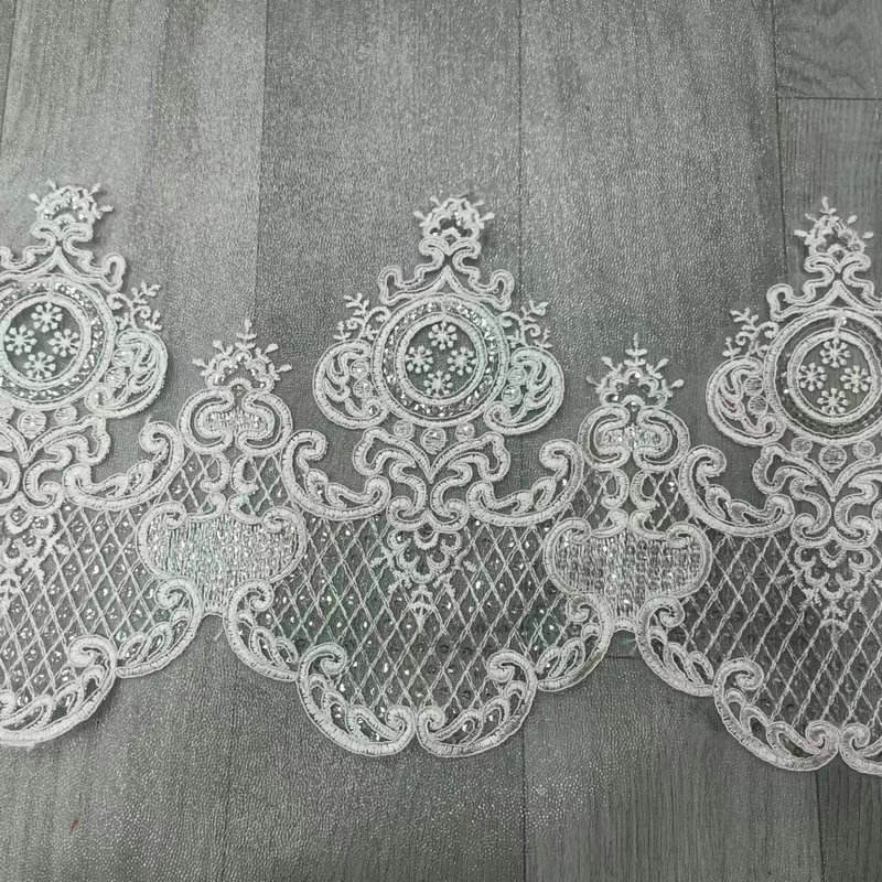 Luksushvit brud fransk blonder brodert brudesnørtrim til brudekjole med en high-end fransk blonderbase, utsøkt tredimensjonalt broderihåndverk og rene hvite toner, det utstråler eleganse. High-end skreddersydde dekorasjoner spesifikt for brudekjoler og kveldskjoler, med delikate og intrikate mønstre, lys og hud-penetrerende tekstur, støtte for å tilpasse bredde og mønstre, perfekt tolke det estetiske av romantiske og luksuriøse bruder. Med en high-end fransk blonderbase, utsøkt tredimensjonalt broderihåndverk og rene hvite toner, utstråler det eleganse. High-end skreddersydde dekorasjoner spesifikt for brudekjoler og kveldskjoler, med delikate og intrikate mønstre, lys og hud-penetrerende tekstur, støtte for å tilpasse bredde og mønstre, perfekt tolke det estetiske av romantiske og luksuriøse bruder.