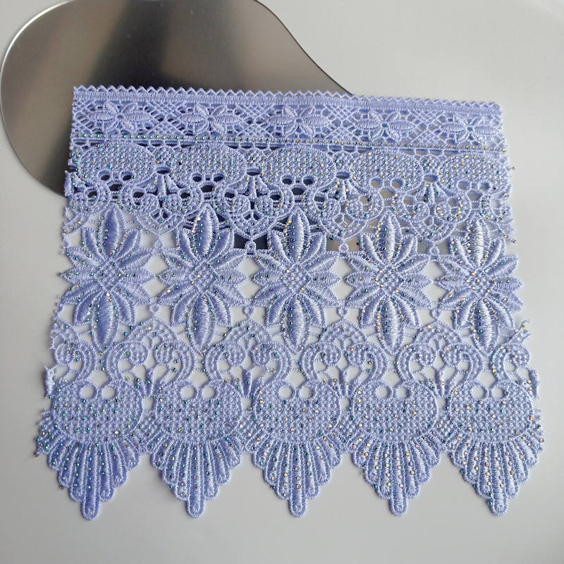 Produsent Engros varmt salg 100% polyester stoffblomst og fuglemønster broderi blonderstoff er laget av full polyesterbase -stoff, med utsøkt blomster- og fuglemønster broderi. Teksturen er tredimensjonal, pustende og myk. Egnet for klær, hjemmeknhertiler og dekorasjon, det tilbyr en rekke alternativer for farge og bredde, støtter tilpasning, har en høykostnadsytelse og er egnet for bulkinnkjøp.