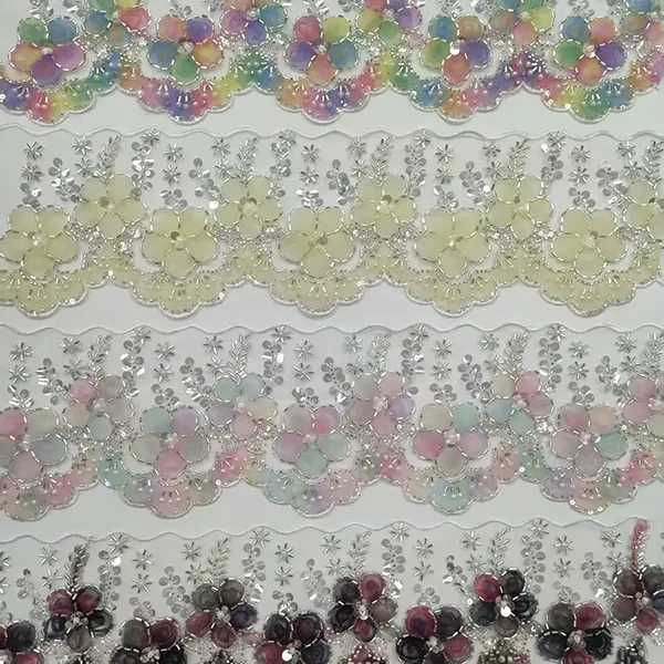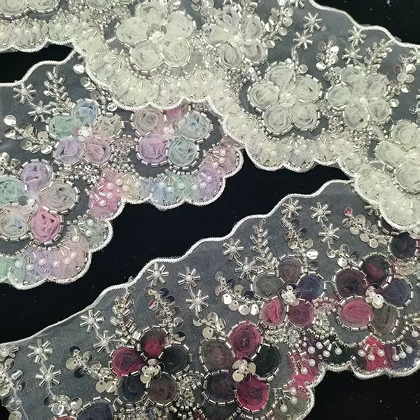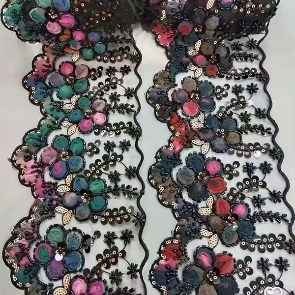 | Vare | Flerfarget brodert blonder med 3D mesh blomsterbånd Perlerør strekkodebroderi blonder | ||